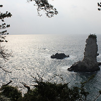 선여와 용왕신의 다들 간의 못다이룬 사랑의 전설이 담긴 촛대 모양의 "선돌바위"는