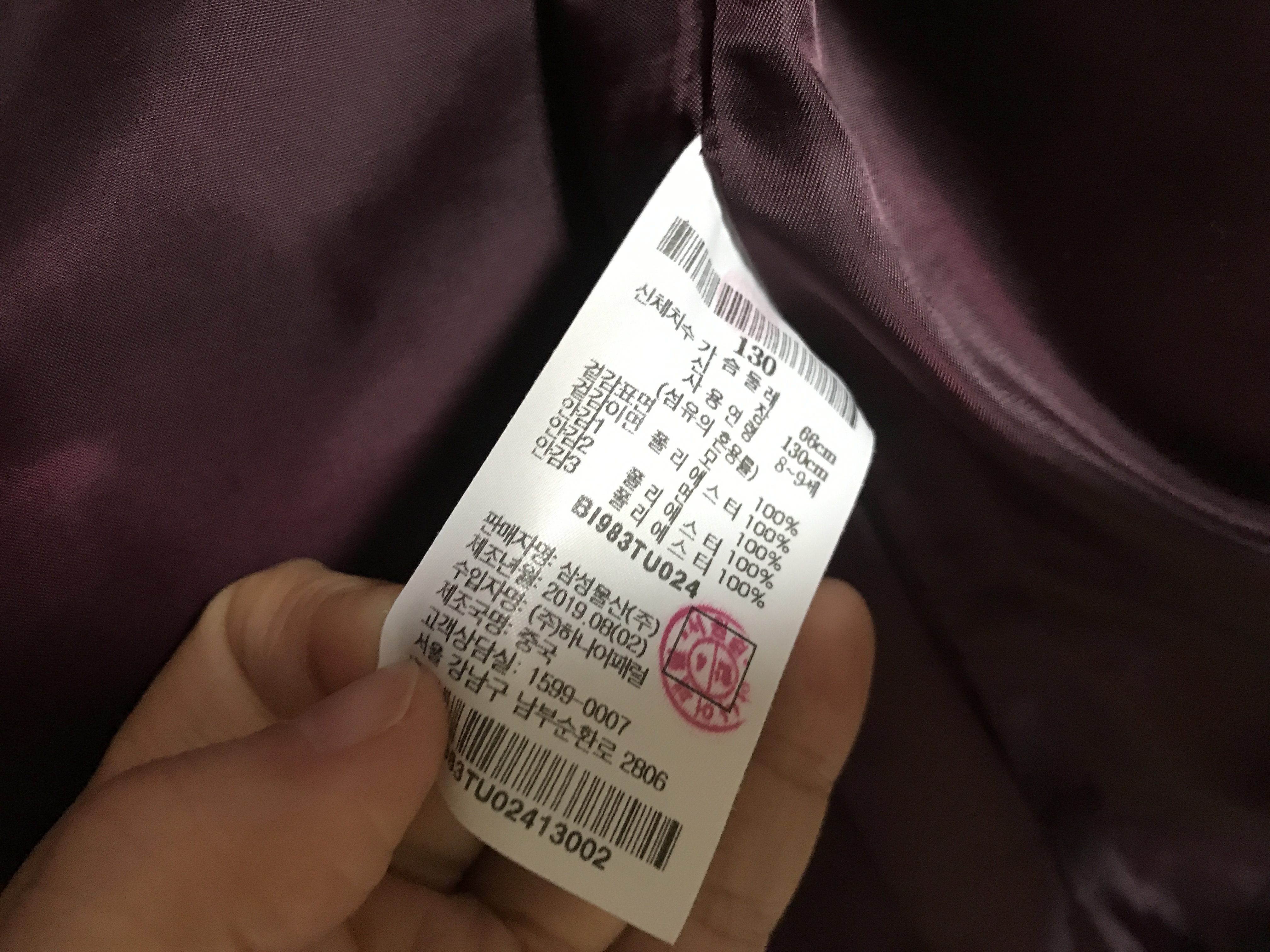 입학식에 입었던 코트가 오래되고 작아져서