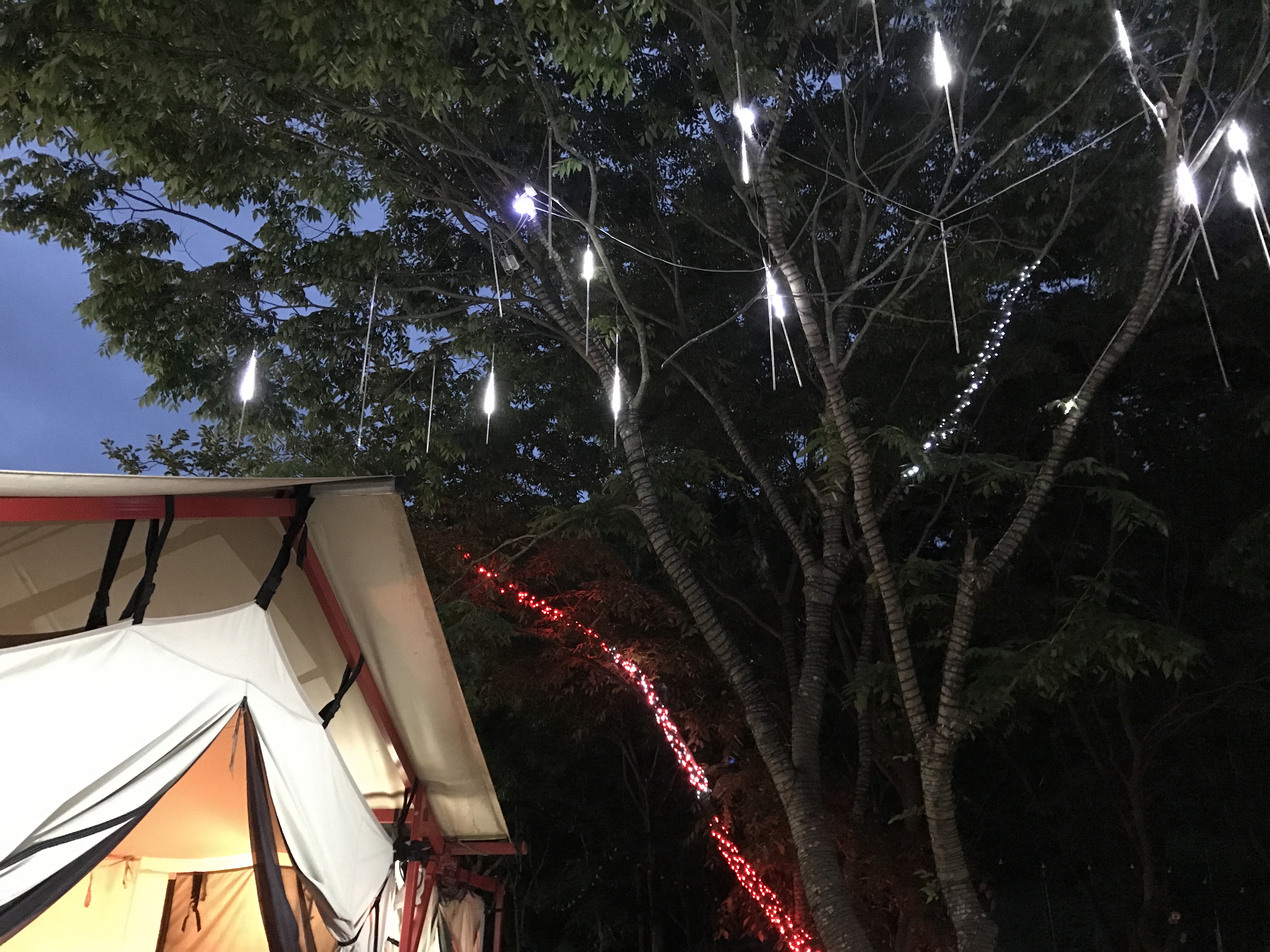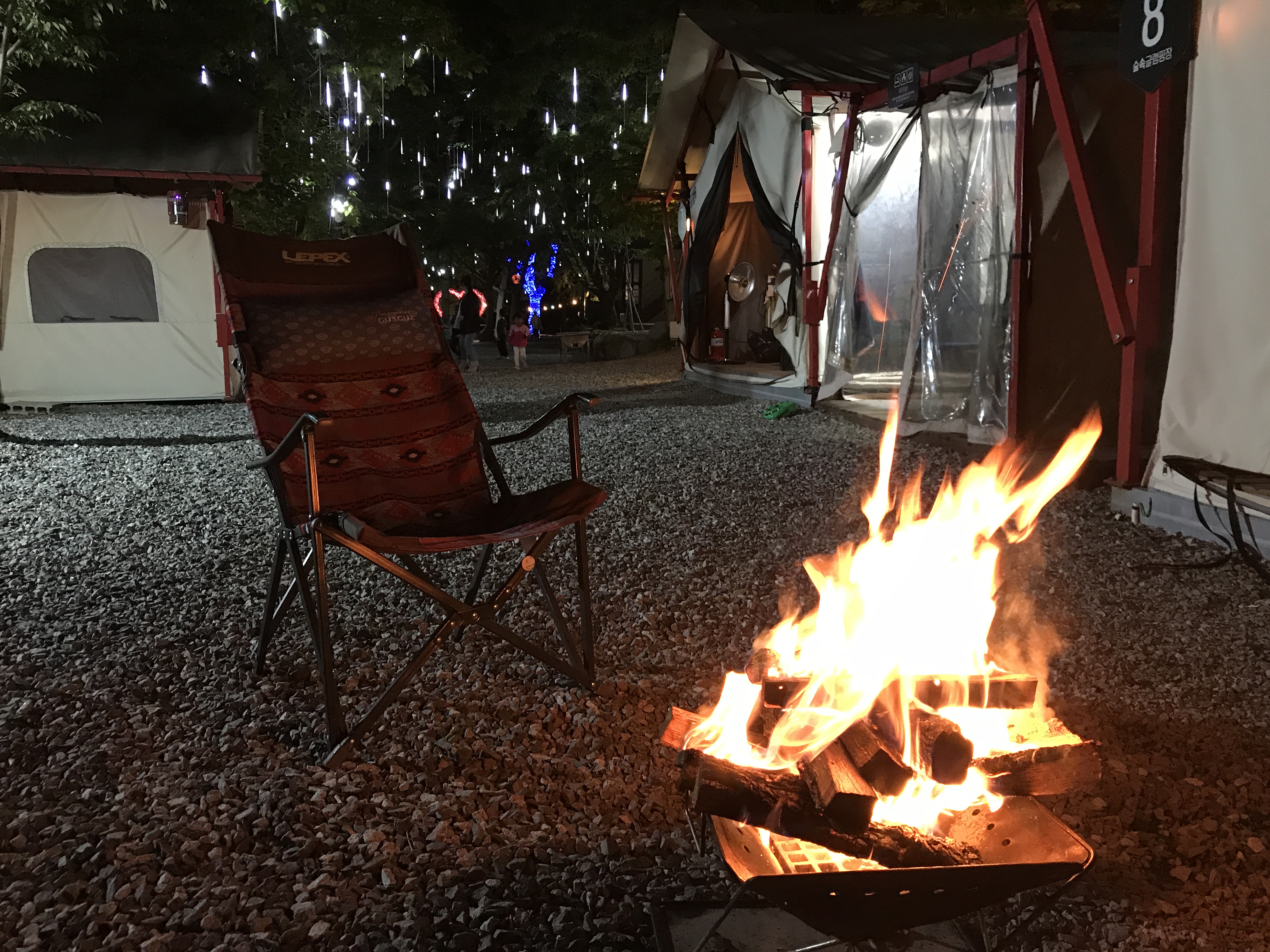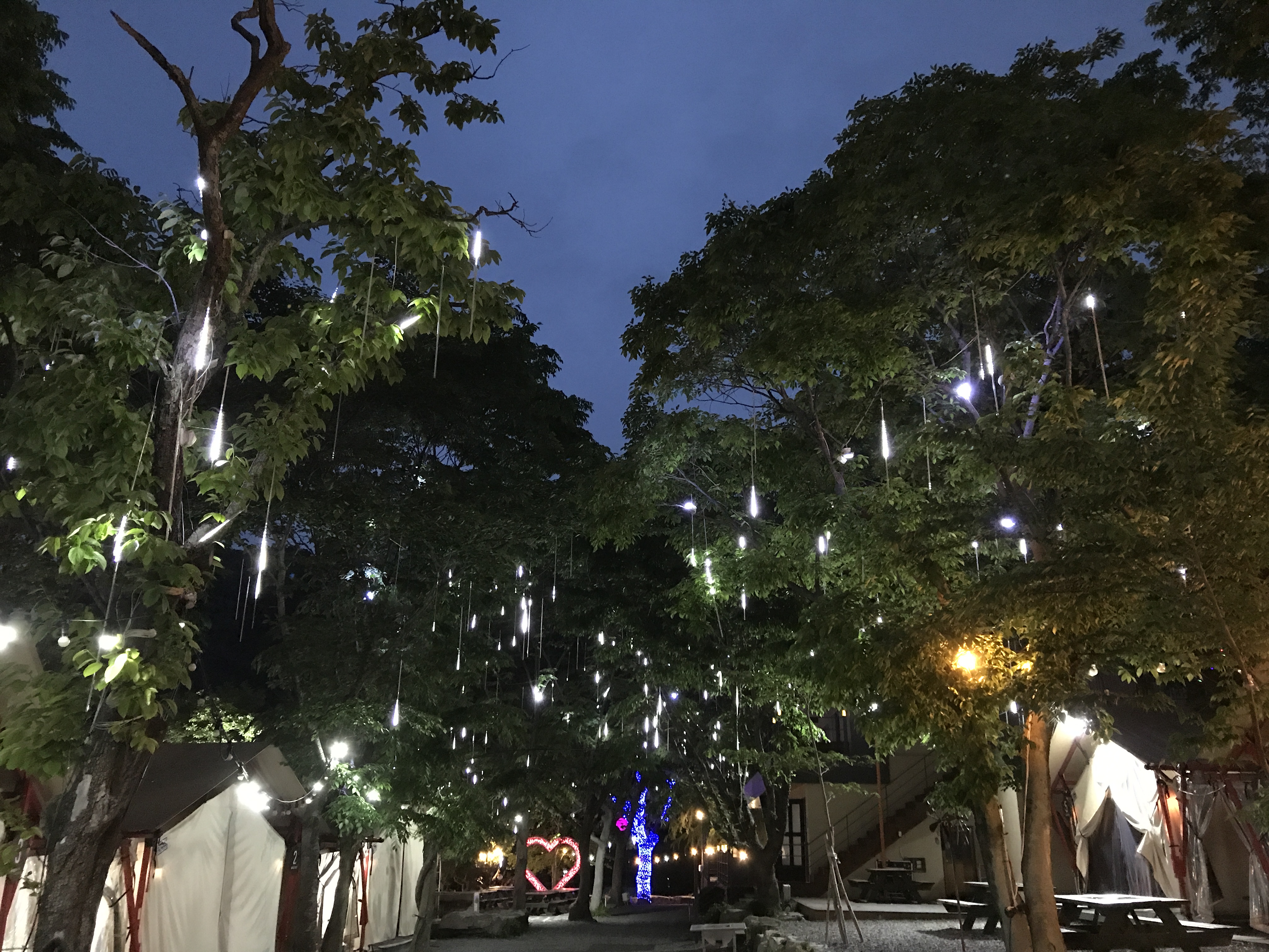 캠핑장 안 나무들에 불빛이 켜진다