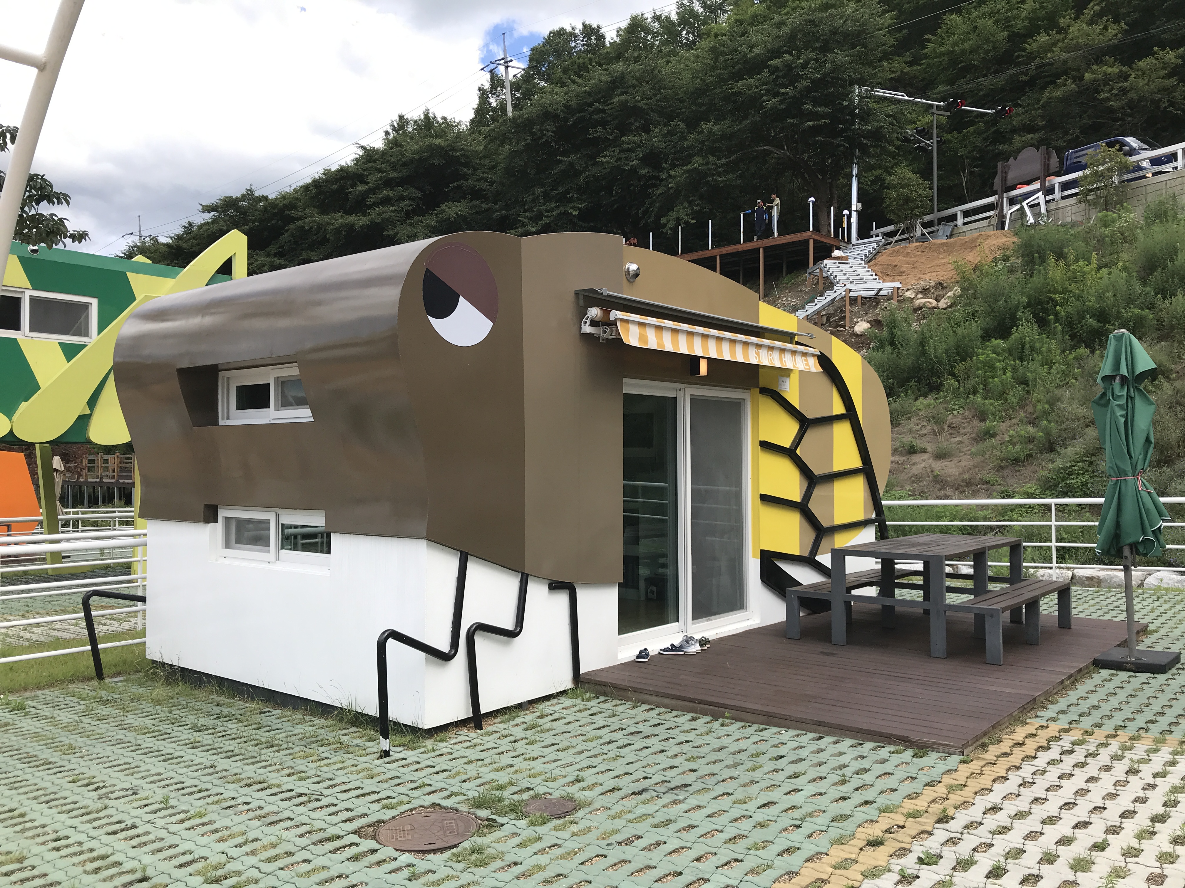 어린아이가 있는 가족은 1층 카라반이