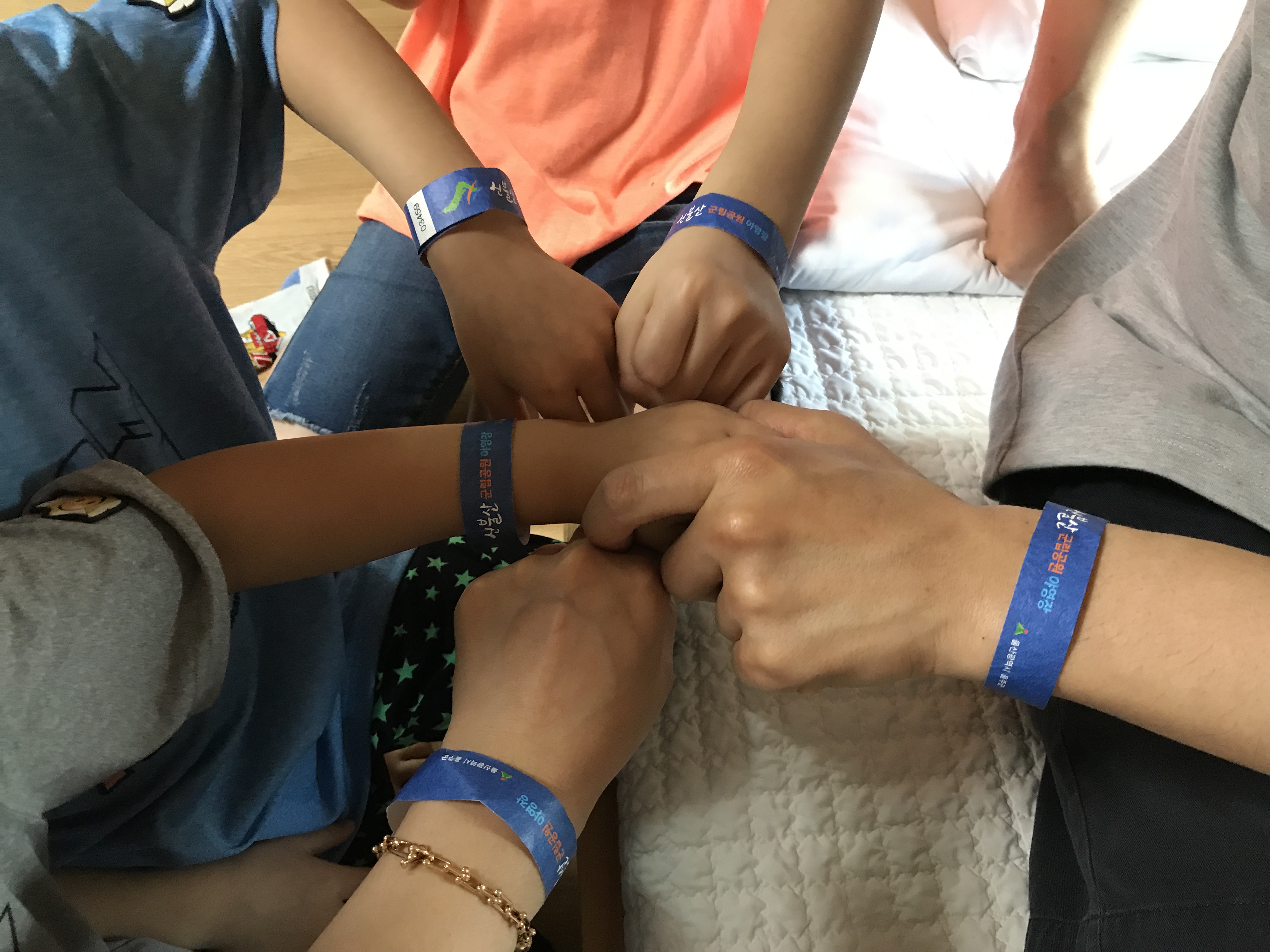 손목에 종이밴드 달아준다