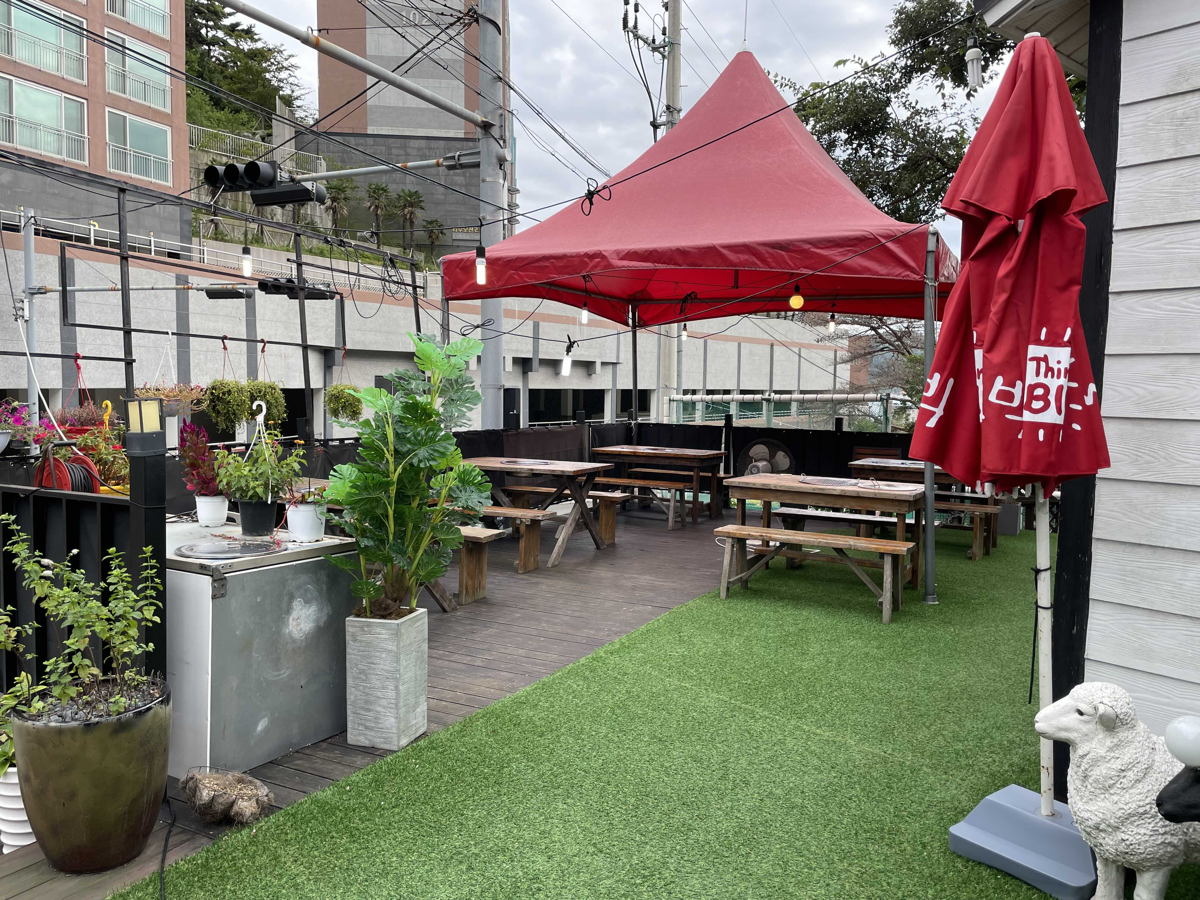 손님이 우리밖에 없어서 그냥 안에서 먹었다