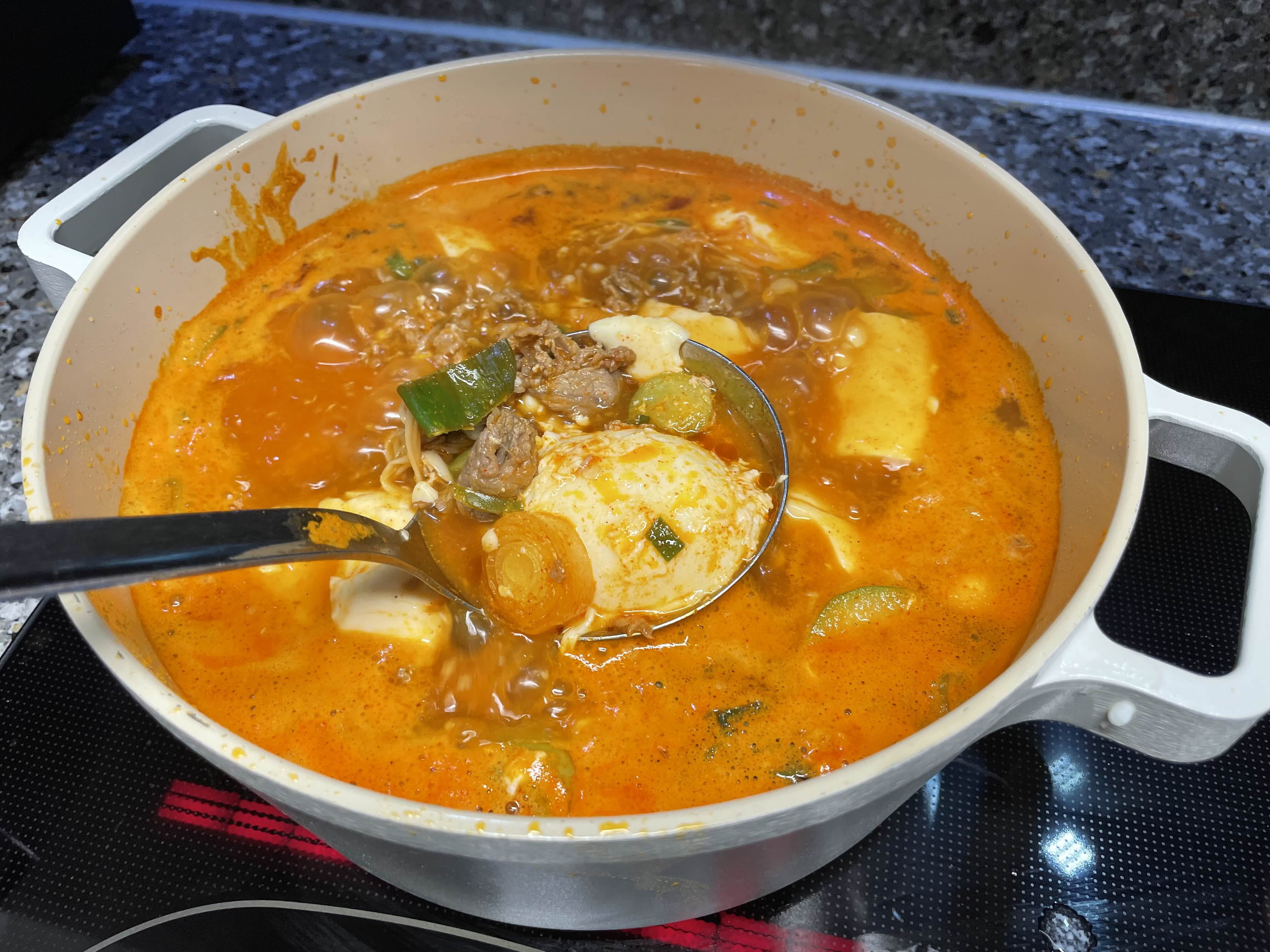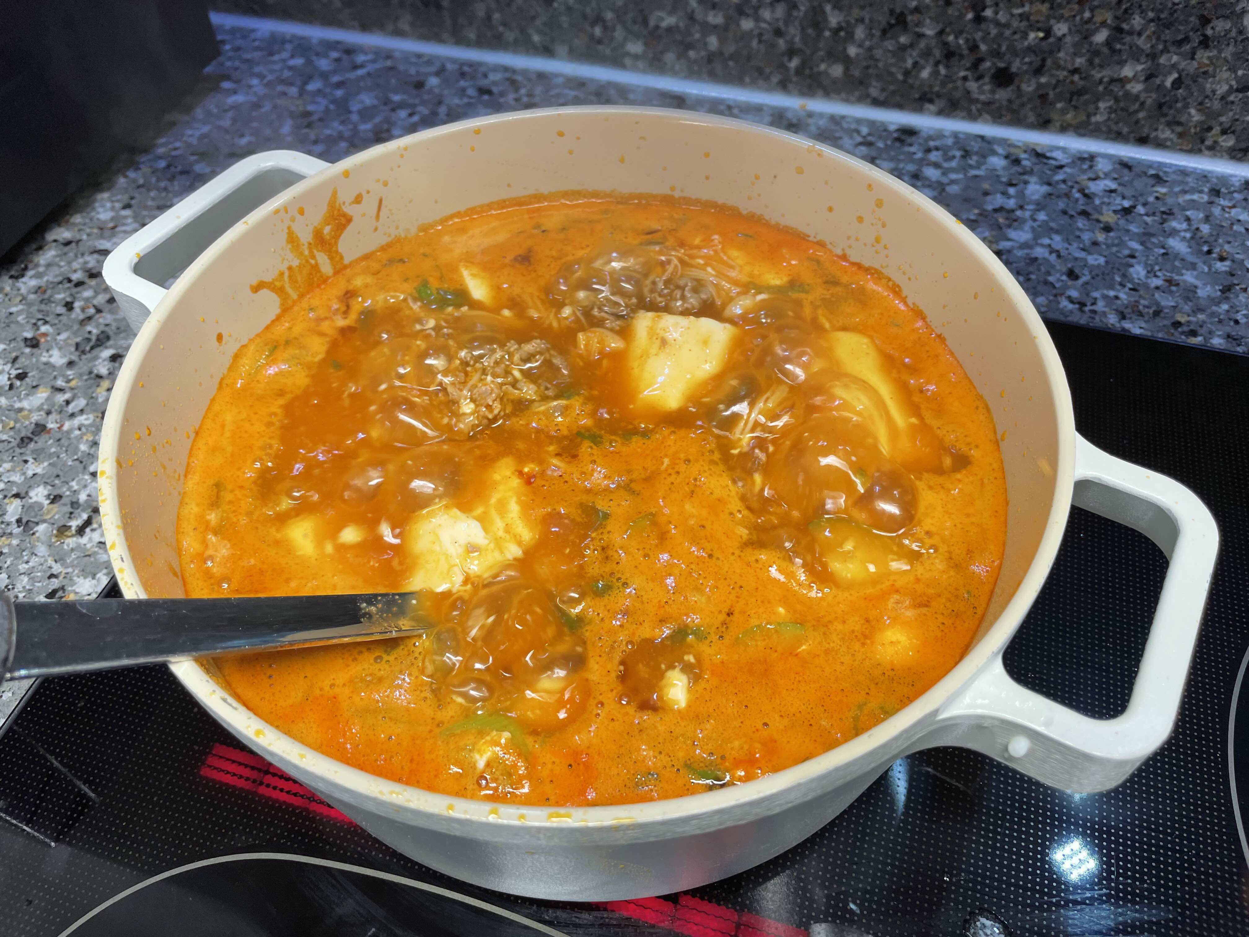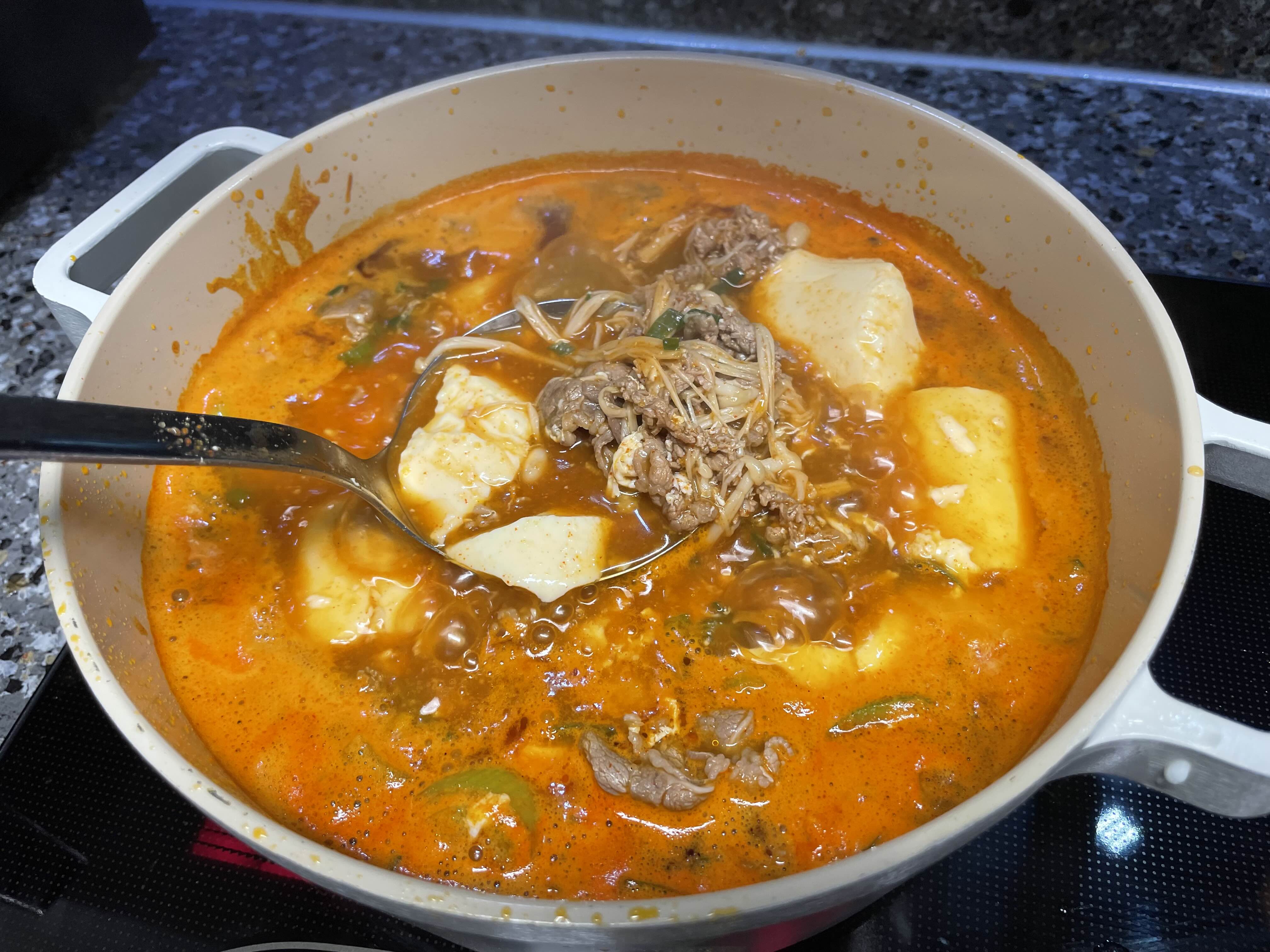 순두부 2봉지, 소고기, 고추기름, 소스,