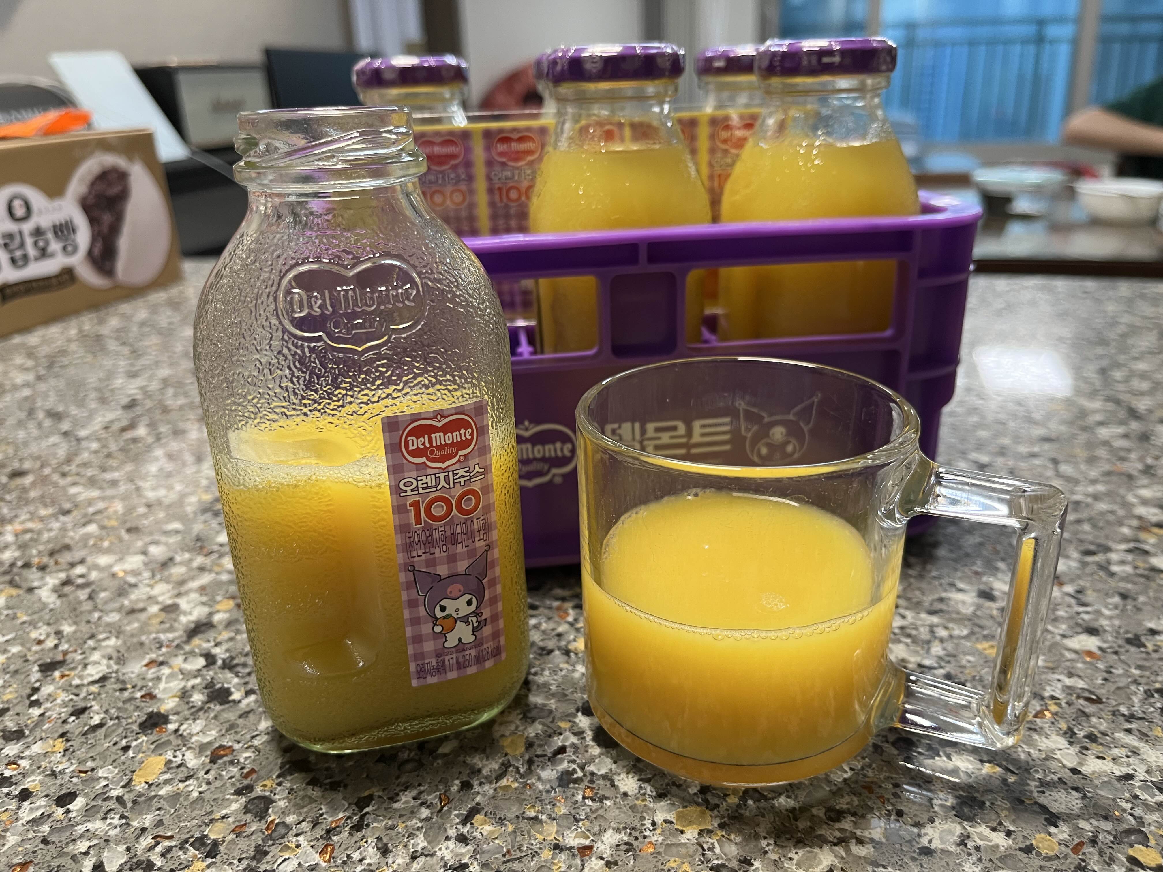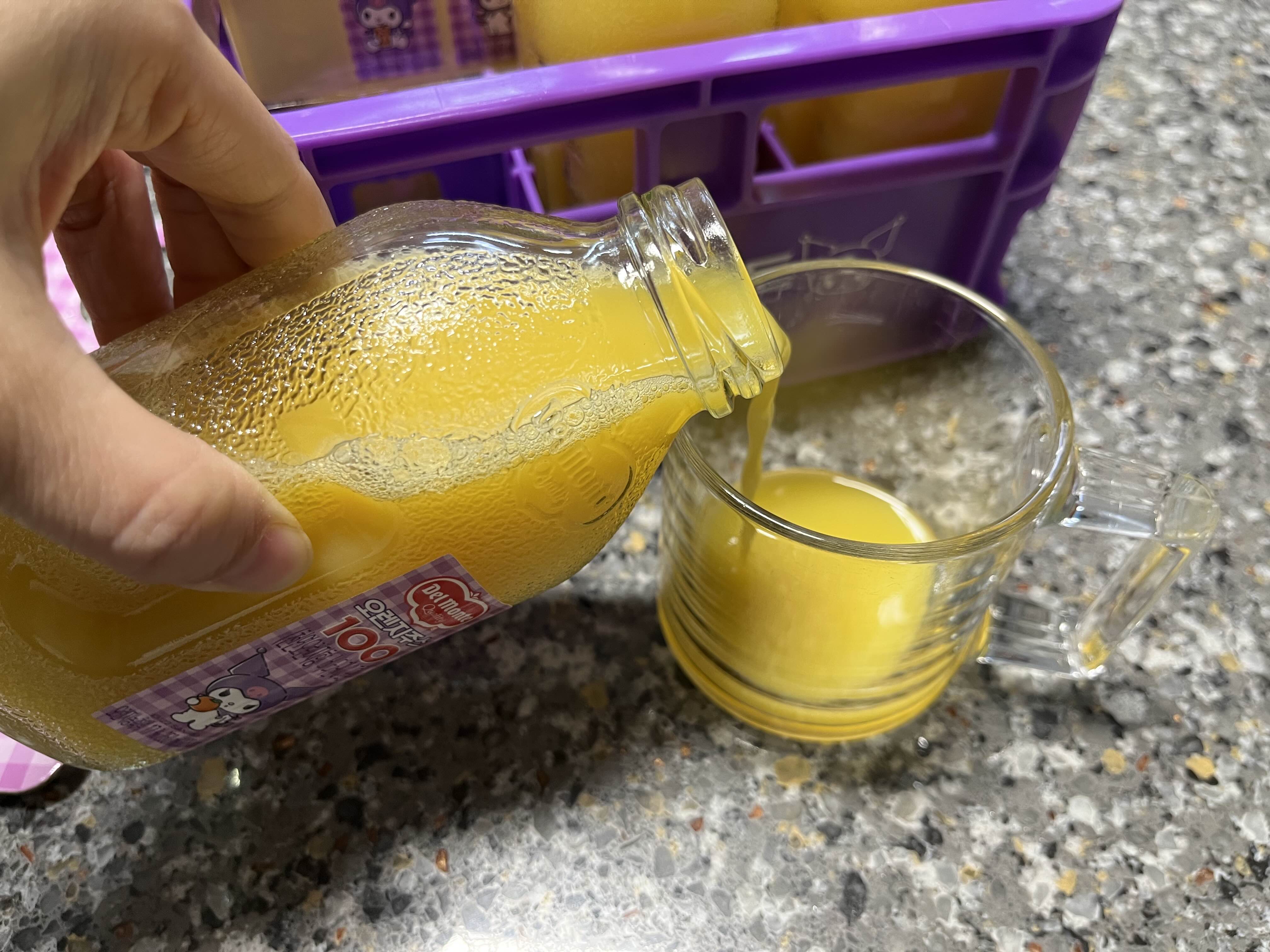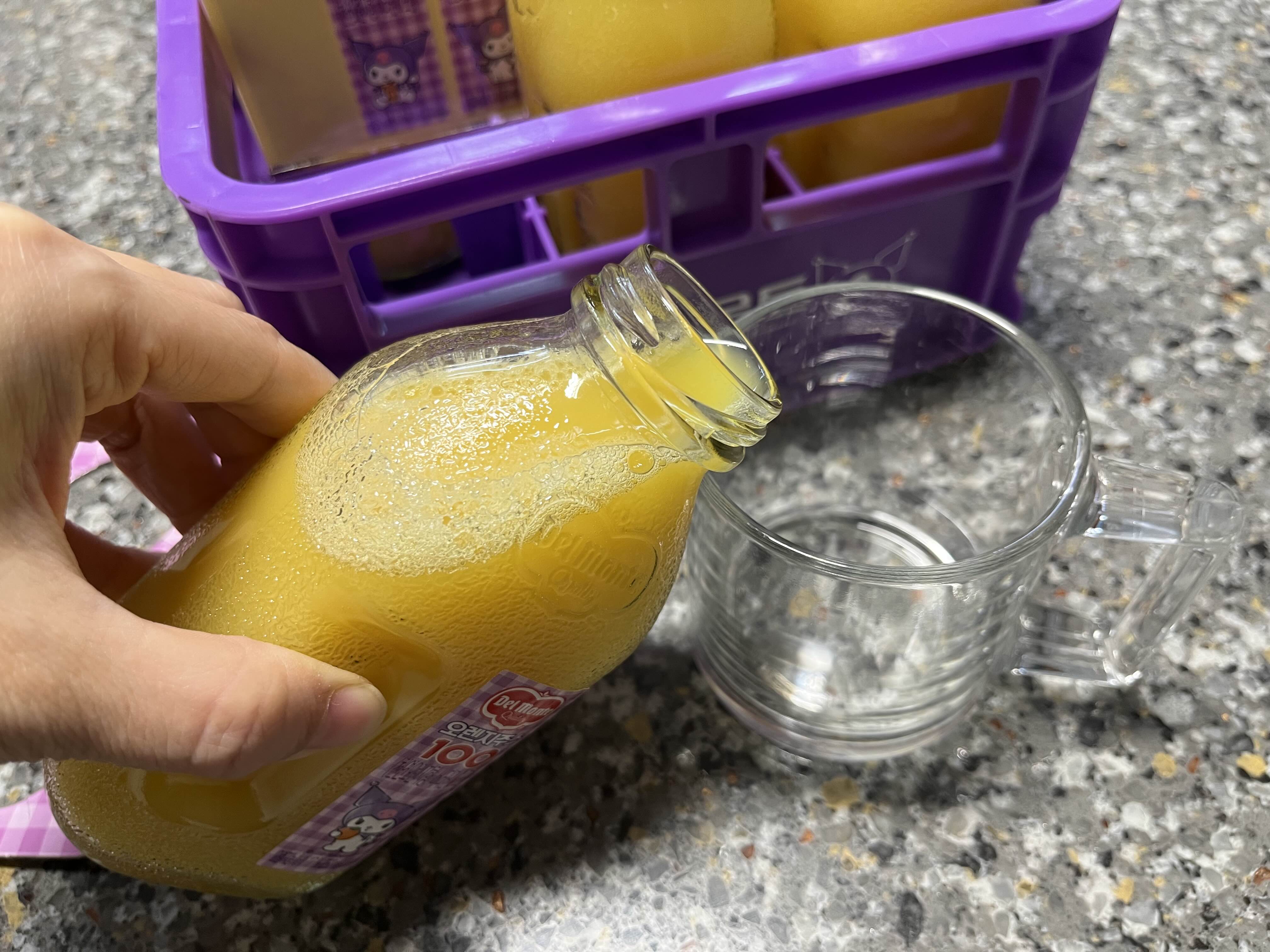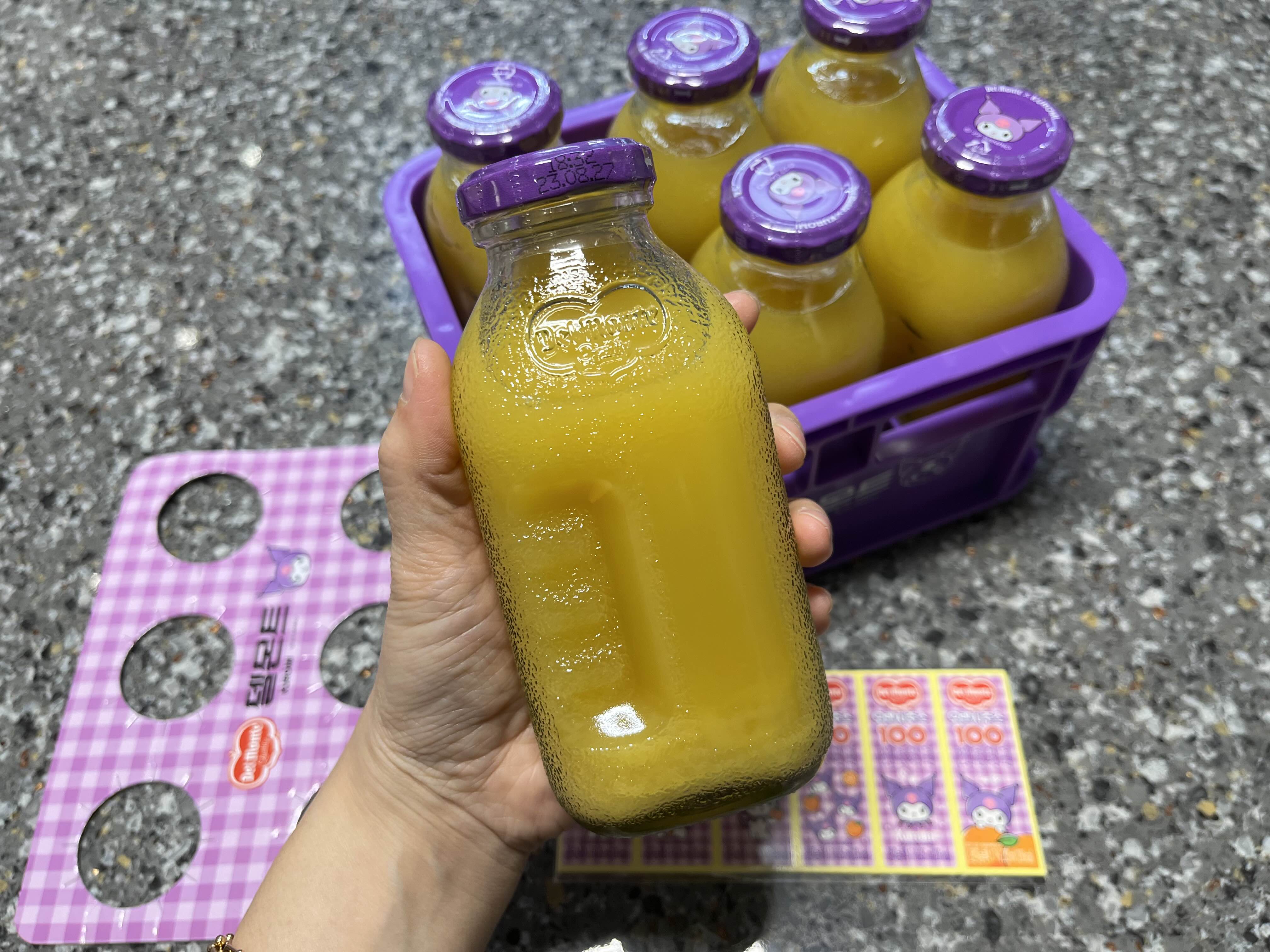 손바닥만한 델몬트 오렌지주스 병
