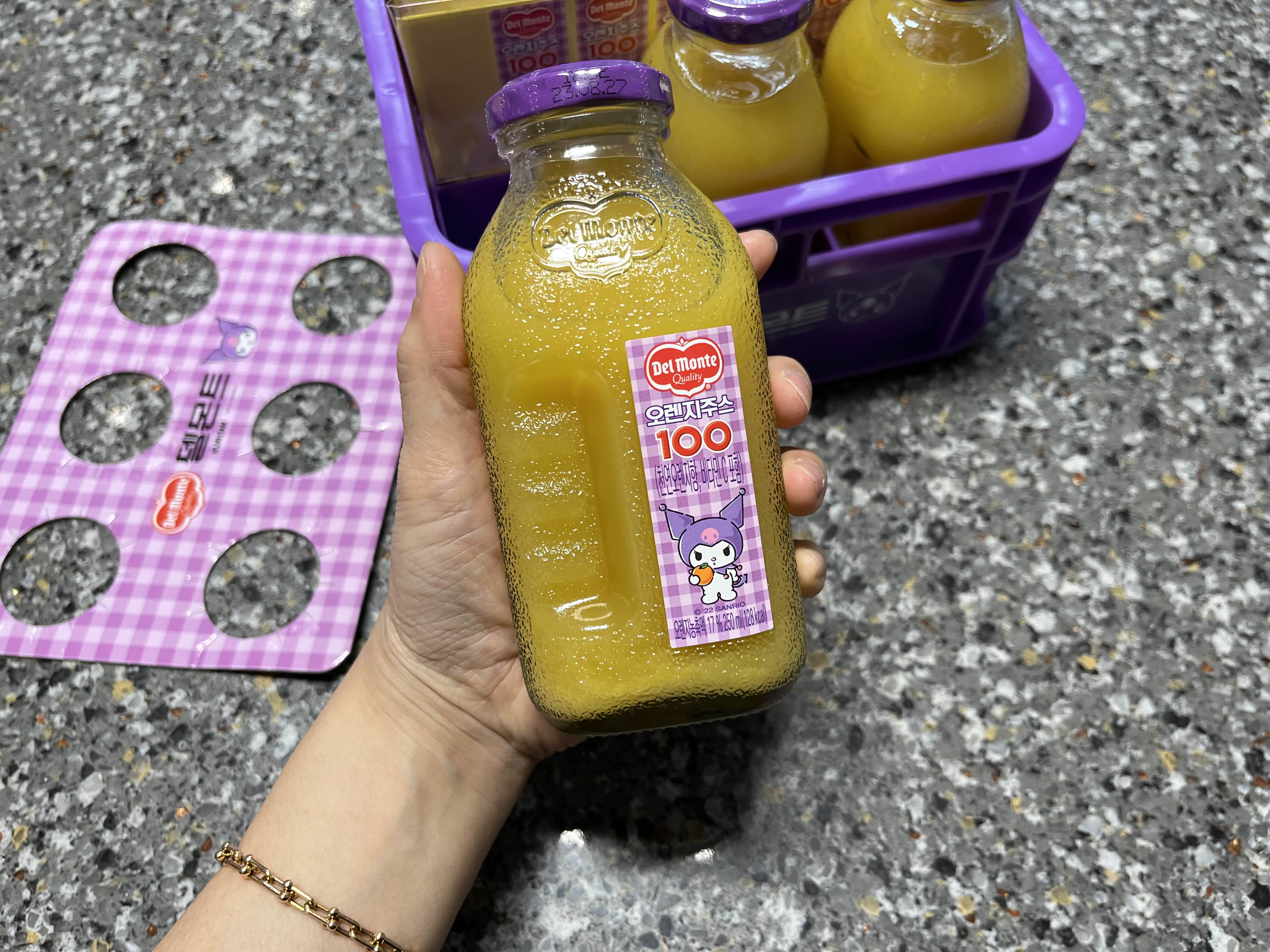 손바닥만한 델몬트 오렌지주스 병